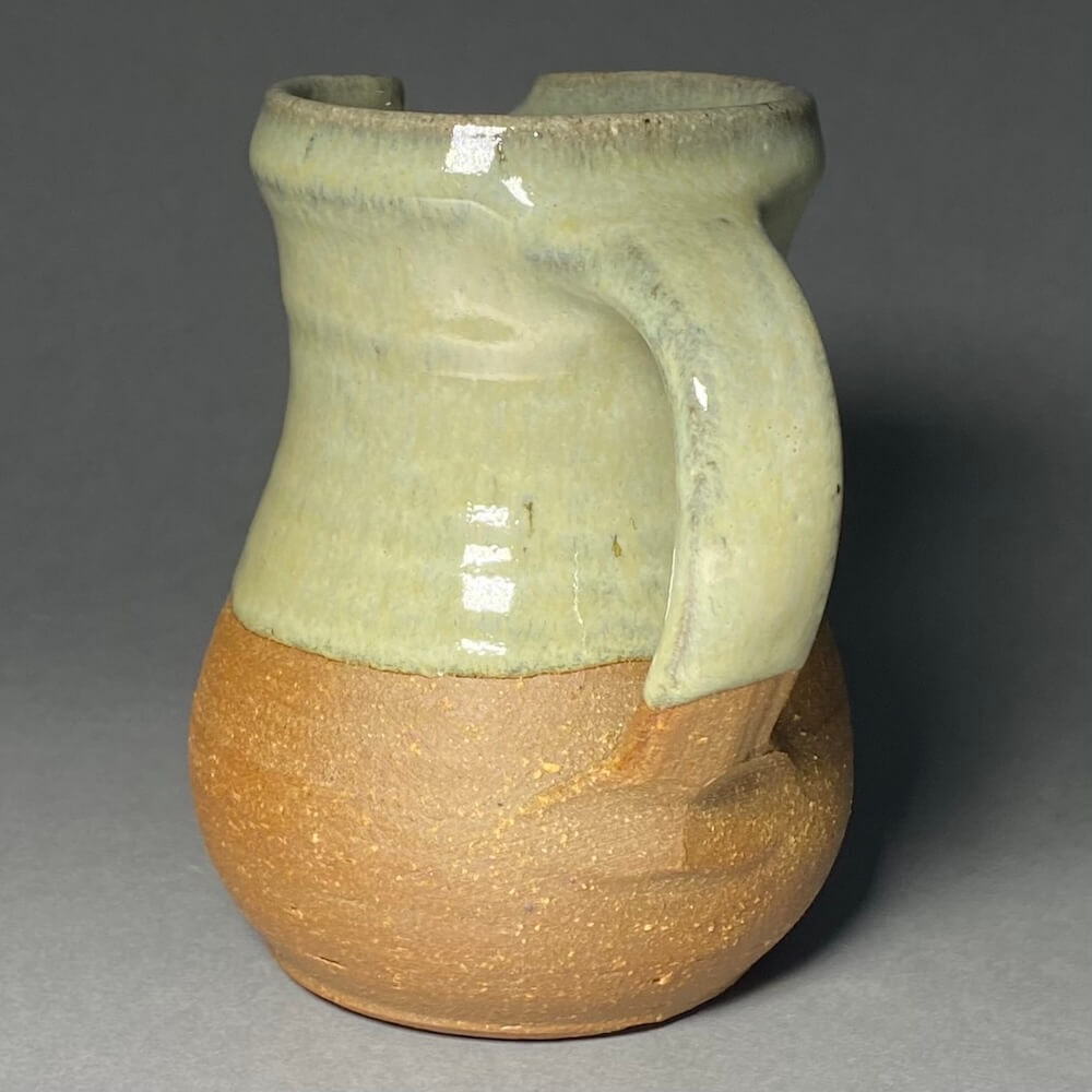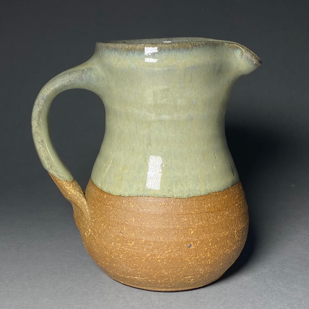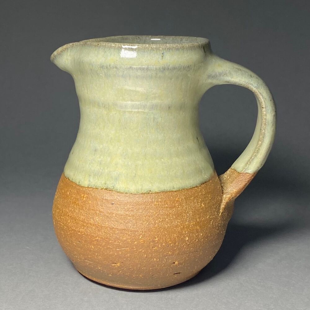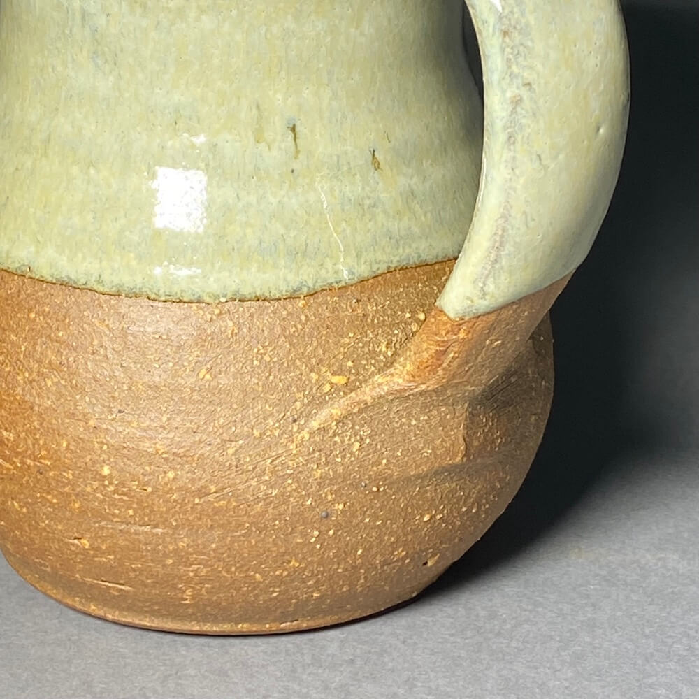 This is a medium sized jug with a wood ash glaze over an iron rich clay.